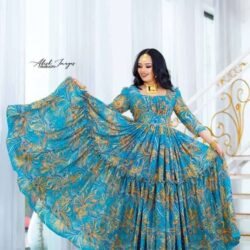 “አዲስ! ዘመናዊና ማራኪ የሐበሻ ቀሚሶች – ውብ በሆኑ ዲዛይኖች New! Flowing Modern Habesha Dress – Vibrant Prints