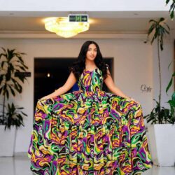 Habesha Chiffon Dress – Vibrant Purple & Yellow Abstract Pattern – Fidel Markato