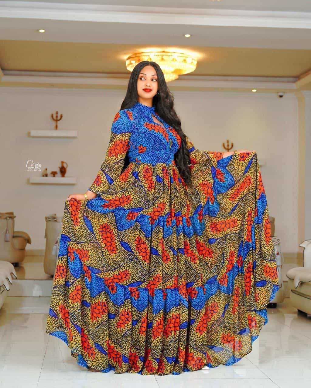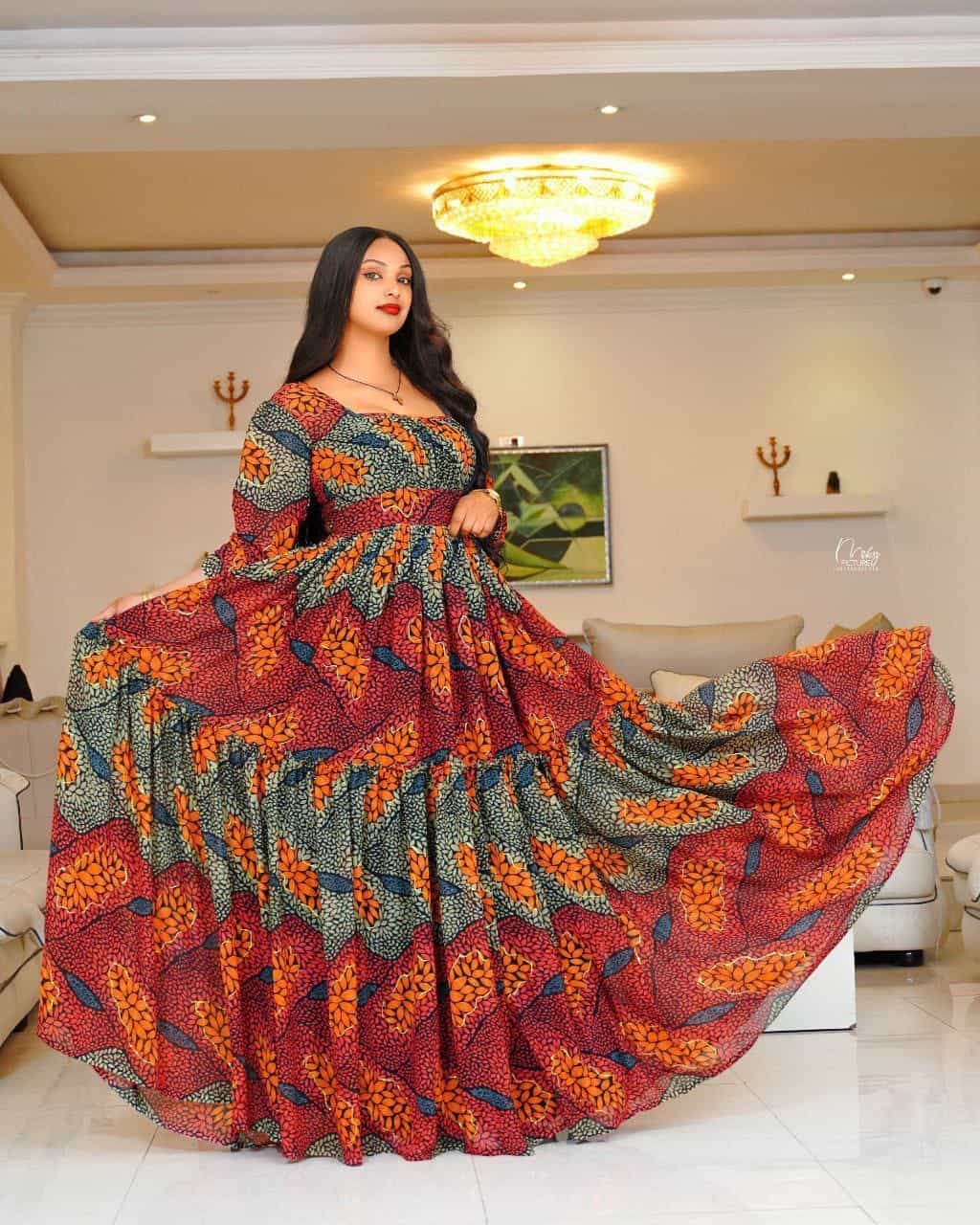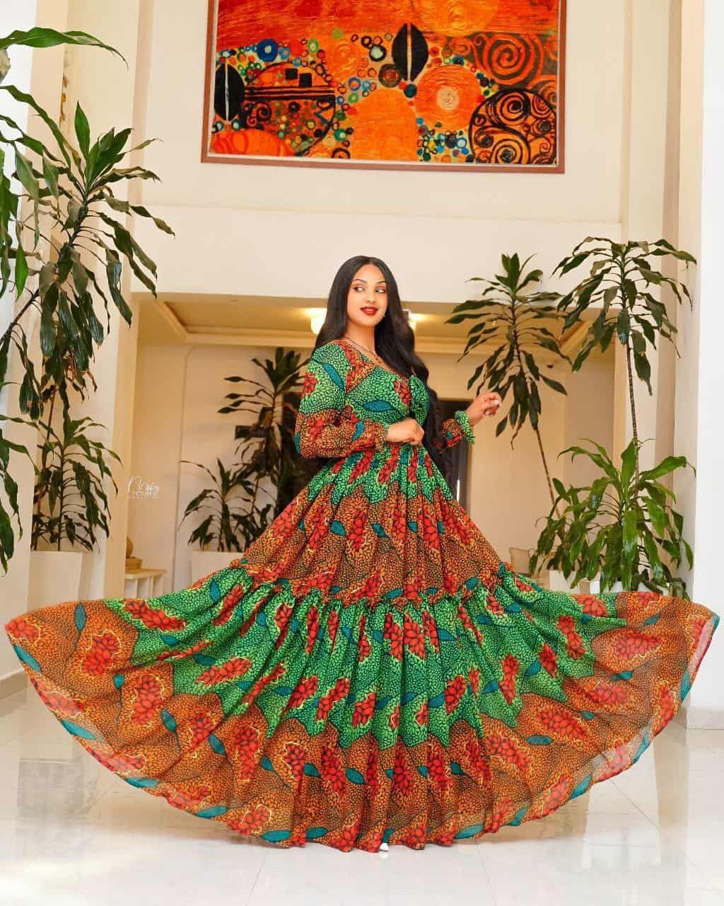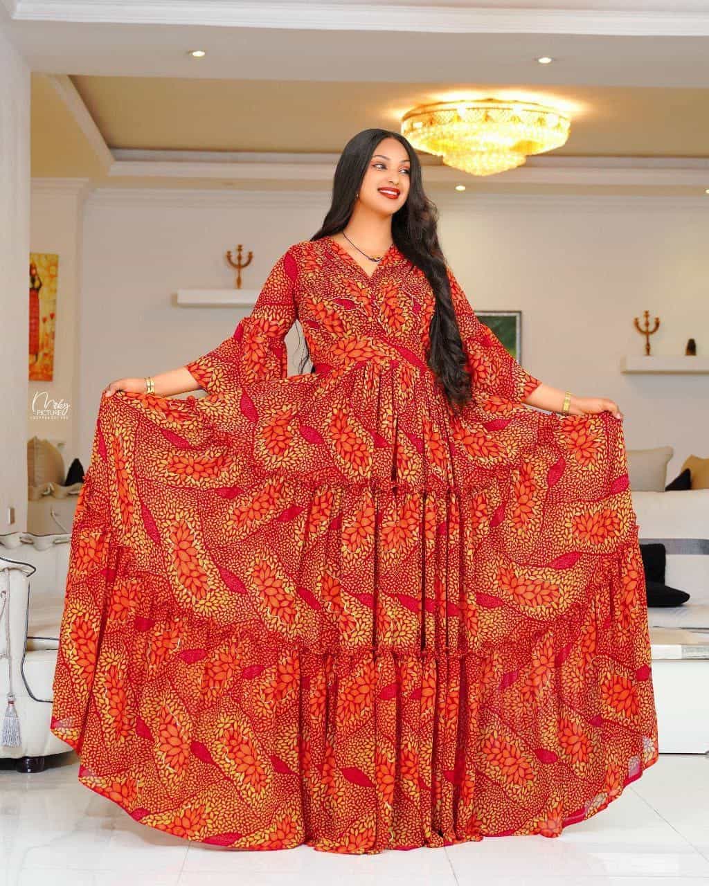 0 out of 5Br6,702Original price was: Br6,702.Br6,468Current price is: Br6,468.Elegant Habesha Chiffon Dress for Women – Traditional Ethiopian & Eritrean Fashion with Modern Floral Design