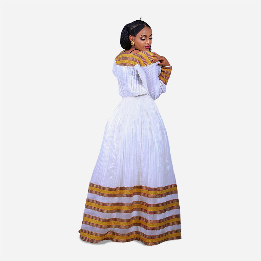 Handcrafted with care, it features intricate designs and high-quality fabric, offering a perfect blend of elegance and tradition. Ideal for weddings, celebrations, or cultural events, this dress is a timeless piece that captures the essence of Ethiopian fashion.