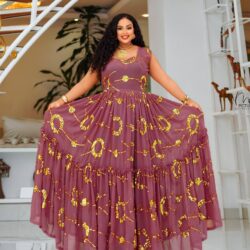 Modern Habesha ሽፎን ቀሚስ ዲዛይን – Elegant Tiered Flowy Dress for Weddings & Melsi